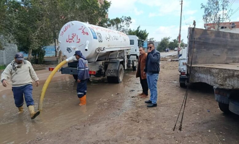 عمال التجميل بمجلس مدينة دسوق يواجهون مياه الأمطار والتخلص منها أول بأول