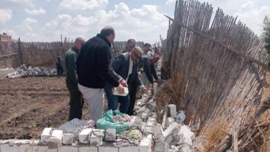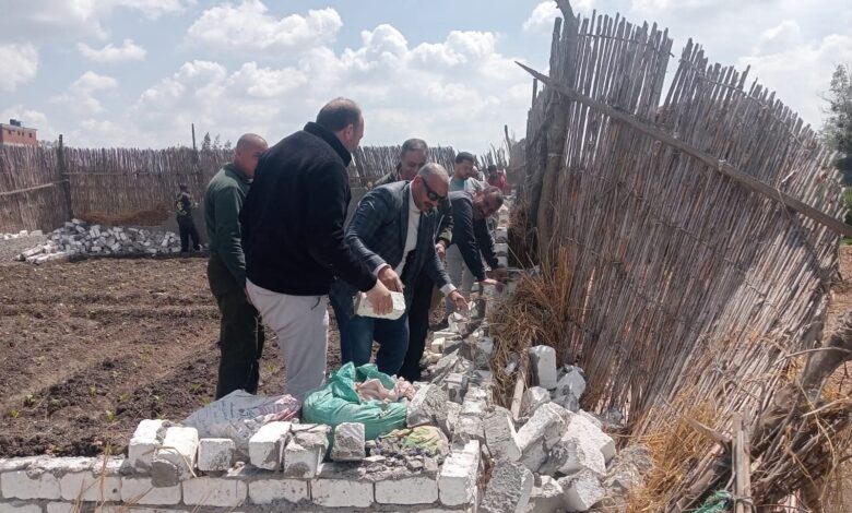 إزالة ٤ حالات تعدٍّ على الأراضى الزراعية والبناء المخالف بقرية كنيسة الصرادوسي