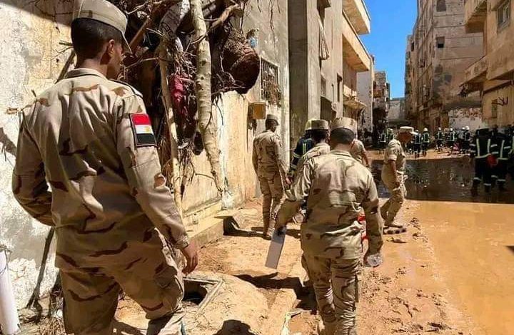 انتشر الجيش المصرى صباح اليوم فى شوارع مدينة درنه برفقة الهلال الأحمر المصرى بحثا عن جثث القتلى والجرحى والمصابين فى حادث اعصار دانيال المدمر .