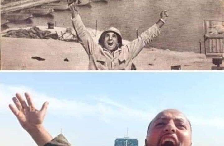 ولتخليد هذا التشابه، دمج المغردون على مواقع التواصل الاجتماعى، الصورتين التى تجمع عامل قناة السويس، والجندى، للتأكيد على صلابة وقوة المصريين فى جميع الأزمات وقدرتهم على النجاح بالعزيمة والإصرار، ورغم مرور قرابة نصف قرن، إلا أن المكان ذاته – وهو ضفاف قناة السويس – كان شاهدًا على لحظات الفرحة والنصر ذاتها.