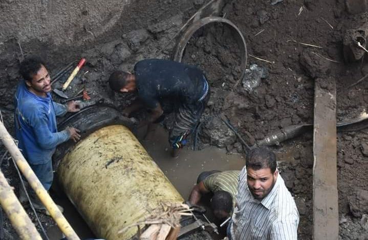 إنتهاء إصلاح كسر مفاجئ بخط طرد صرف صحى 700مم بمدينة الأقصر
