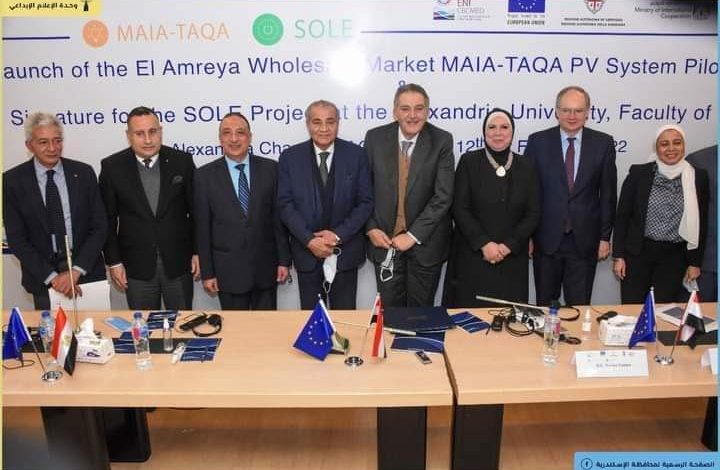 في إطار تنظيم مصر لقمة تغير المناخ COP 27، افتتح اللواء/ محمد الشريف محافظ_الإسكندرية والدكتور/ علي المصيلحي وزير التموين والتجارة الداخلية، والسيدة نيفين جامع وزيرة التجارة والصناعة، وسفير الاتحاد الأوروبي كريستيان بيرجر وممثل وزارة التعاون الدولي، ورئيس غرفة الإسكندرية واتحاد غرف البحر الأبيض أحمد الوكيل، اليوم، إطلاق تشغيل أول سوق للجملة في العالم يعمل بالطاقة الشمسية ضمن مشروع MAIA-TAQA الممول من الإتحاد الاوروبي فى إطار برنامج التعاون عبر حدود حوض البحر الأبيض المتوسط EU ENI CBC Med. وحضر الافتتاح السيدة شيرين طه، مساعد وزيرة التعاون الدولي نيابة عنها.
