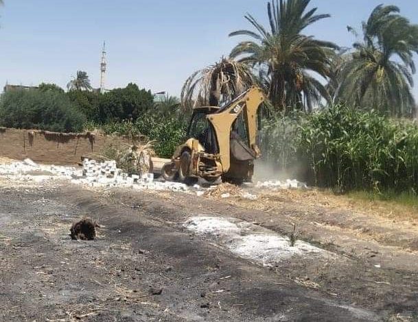 إزالة حالتي تعدي بالبناء على أراضي زراعية بناحية حوض الفارسية بأسنا جنوب الأقصر