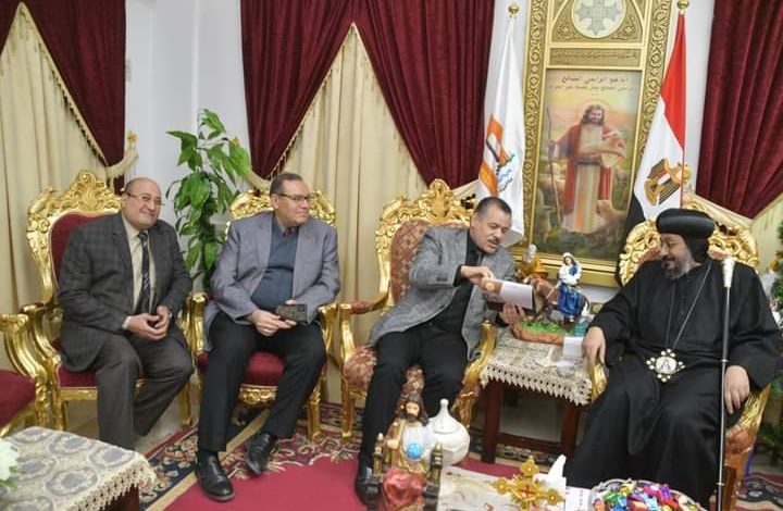رئيس جامعة الوادى الجديد يزور كنيسة العذراء بالخارجة ويقدم التهنئة بمناسبة بعيد الميلاد المجيد