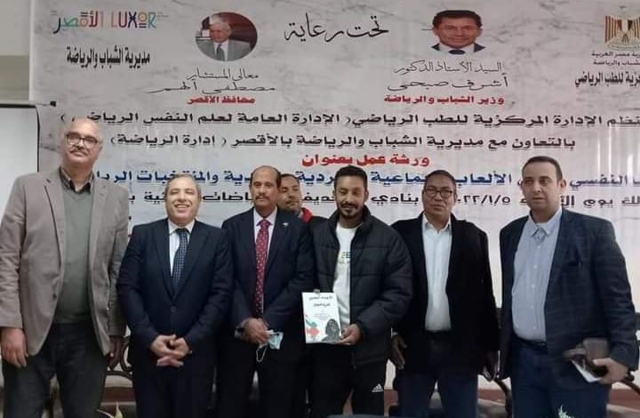 نظمت الإدارة المركزية للطب الرياضى – الادارة العامة لعلم النفس الرياضى – بوزارة الشباب والرياضة بالاشتراك مع مديرية الشباب والرياضة بالأقصر (إدارة الرياضة) ورشة عمل بعنوان “الملف النفسي لمدربى الالعاب الجماعية والفردية بالاندية والمنتخبات الرياضية ” للعام المالي ٢٠٢١ /٢٠٢٢م.
