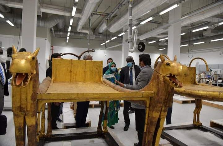 وقد اصطحبهم الدكتور الطيب عباس مساعد وزير السياحة والآثار للشئون الأثرية بالمتحف المصري الكبير في جولة تضمنت زيارة مركز ترميم الآثار والمعامل المختلفة به، والبهو حيث تمثال الملك رمسيس الثاني وعامود الملك مرنبتاح وتمثالين ملكيين من العصر البطلمي بإلاضافة إلى الدرج العظيم وما به من آثار ضخمة.