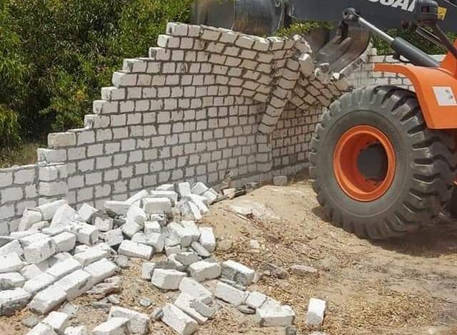 مدينة الطود تزيل 3 حالات تعدى بالبناء على أراضى أملاك الدولة ومبانى مخالفة
