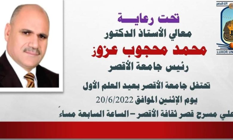 تحت رعاية الدكتور محمد محجوب عزوز، رئيس جامعة الأقصر، تستعد الجامعة لتنظيم عيد العلم لاول مرة الاثنين المقبل بقصر ثقافة الأقصر.