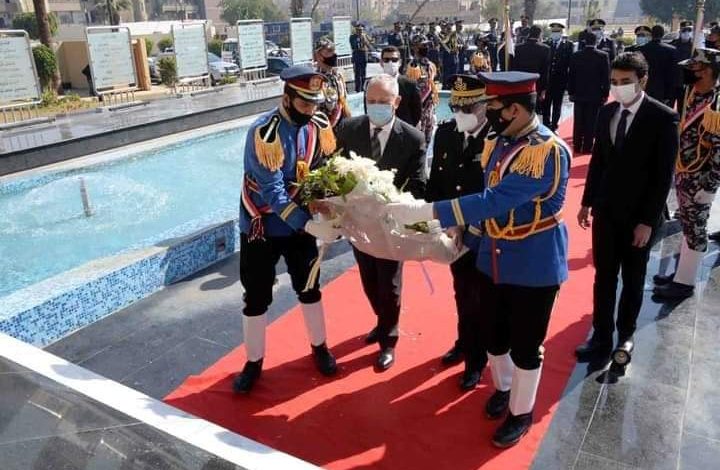 محافظ الأقصر ومدير الأمن يضعان أكليلا من الزهورعلى النصب التذكاري لشهداء الجيش والشرطة