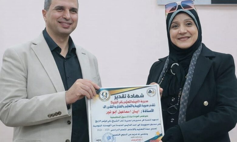 نظرا لاجادة إدارة الجودة بمديرية التعليم بكفر الشيخ قام الدكتور علاء جوده، وكيل وزارة التعليم بكفر الشيخ بتكريم إدارة الجودة بالإدارات التعليمية وذلك لتقديم الشكر لهم على ما بذلوه من جهد مميز ومتابعة ميدانية دؤوبة نتج عنها الحصول على المركز الرابع علي مستوي الجمهورية في عدد المدارس المعتمدة للعام الدراسي 2024. 2025 بعدد 71 مدرسة وكذلك إنجاز خطة التقدم الإعتماد للفصل الدراسي الأول للعام الحالي 2025. 2026 بإجمالي 46 مدرسة خلال الفصل الدراسي الأول بنسبة 100 ٪ وفي انتظار نتيجة الاعتماد.