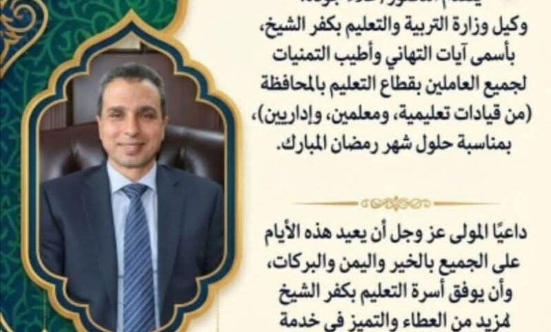 نناشد محافظ كفر الشيخ بحث أسباب قيام المنظومة التعليمية اقصاء عمال المدارس من التهنئة بمناسبة شهر رمضان المبارك