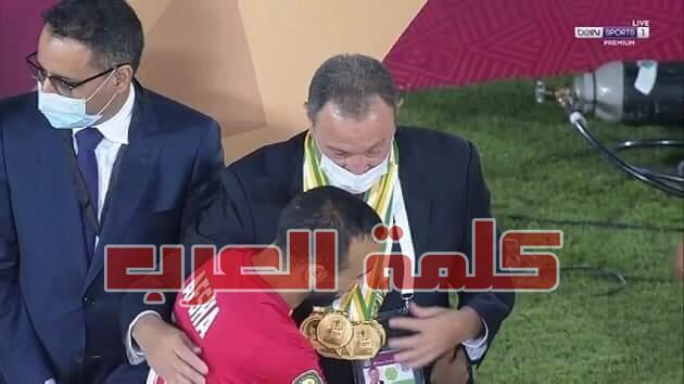 منح جميع لاعبي الأهلي ميدالياتهم الذهبية للخطيب في لفتة رائعة، ليزين صدره بها قبل أن يردها رئيس القلعة الحمراء للاعبين.